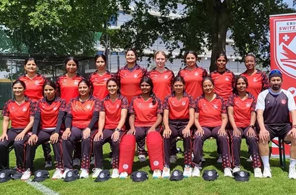 Switzerland in reply had a shaky start, losing Laila Pickard for 6 (10) and Franziska Kuenburg for 8 (11), leaving Switzerland at 20/2. By the sixth over, Switzerland was at 33/3 as Millie Holmes was caught off Sruthi Yenamandra’s bowling for 3. Meghna Rajan and Ananya Srinivasan then took charge, forming an unbeaten partnership of 99 runs.