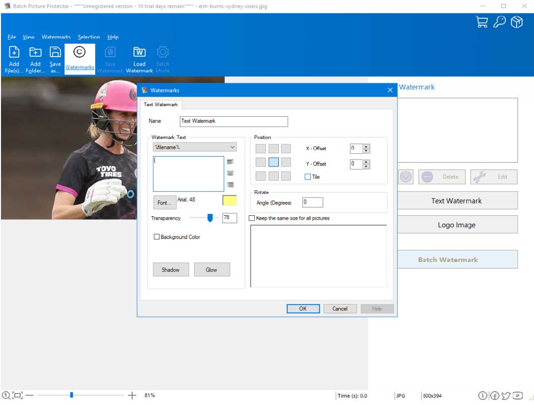 You share unique frames from training, and they quickly disperse across fan communities. Batch Picture Protector — this professional tool for batch adding unique watermarks on photo with selection degree transparency.
